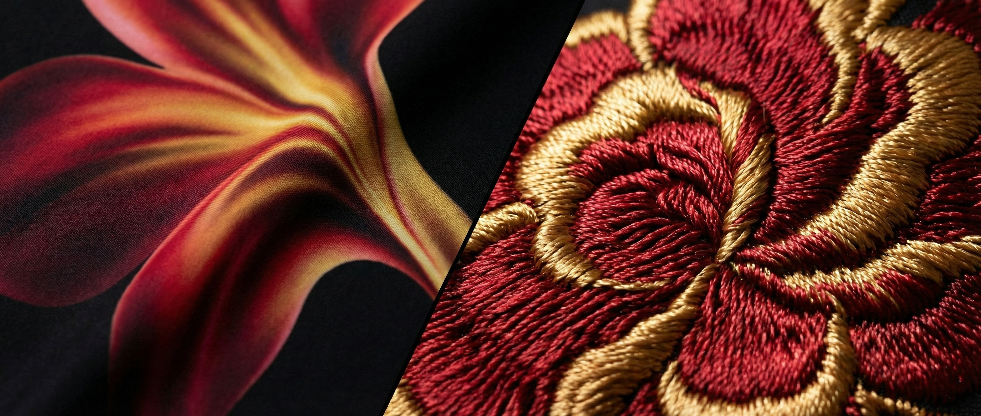 Vibrant full-colour DTF and luxury embroidery for professional branding.