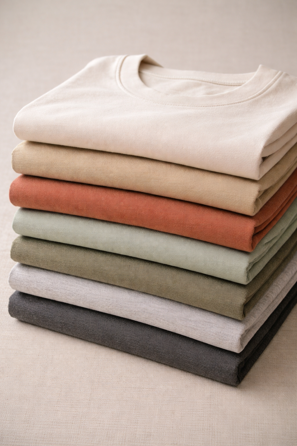 Always wash your garments inside out. Use a standard cycle at 40°C (or 30°C for speciality effects) with mild detergents. This prevents friction and protects the integrity of the print or embroidery.