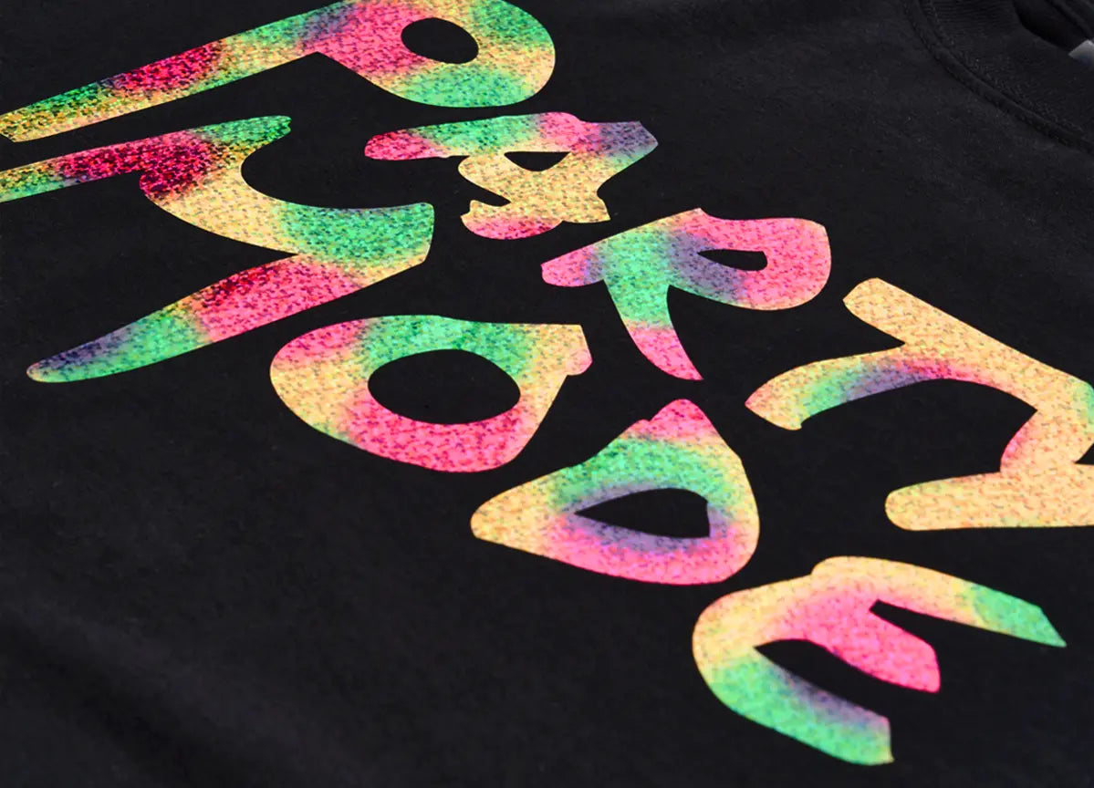Never apply direct heat to the printed or embroidered surface. Always iron on the inside (reverse side) of the garment to keep the textures sharp and the glows vibrant.